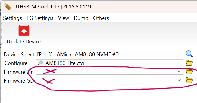 Now when I select that config file that you uploaded, the uthsb tool lite doesn't select the firmware bin and GD. I'm trying to flash the latest v1.33.44 driver, but it doesn't select the files when I try to flash to the Lemorele AM8180 enclosure. I've tried renaming the firmwares with "AM8180" but no luck. How should I modifiy the bin files so that I can select them?
