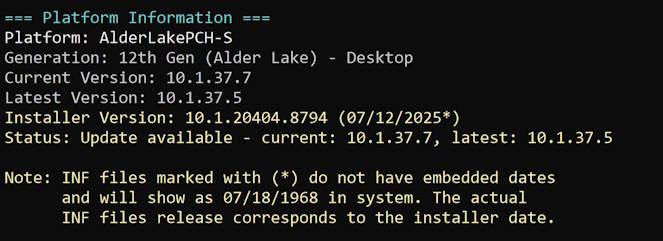 - Enhanced platform detection: Added automatic detection for Intel platforms that use Windows 11 24H2 inbox drivers (e.g., Meteor Lake)