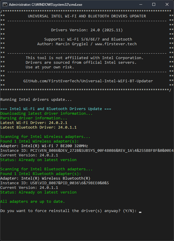 Project: github.com/FirstEverTech/Universal-Intel-WiFi-BT-Updater