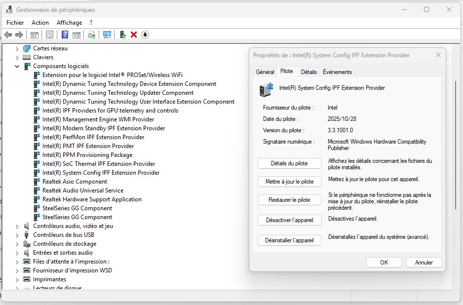 Asus Z890 ProArt, Intel Cpu Core Ultra 7 265K, Memoires 32Go Corsair DDR5 (6000Mhz CL30), Water-cooling Thermaright, nVidia Geforce RTX4060, Alimentation Gigabyte 850W, Samsung SSD 990 Pro, SSD9100 Pro, Steelserie Pro , Souris Razer, Boitier HUMMER, HP Steelserie, Free Fibre Ultra (8Go/8Go), Lan 10Gb, Cable CAT8/7, Switch 10/5/2.5Gbps, Casque Philips Fedelis.
