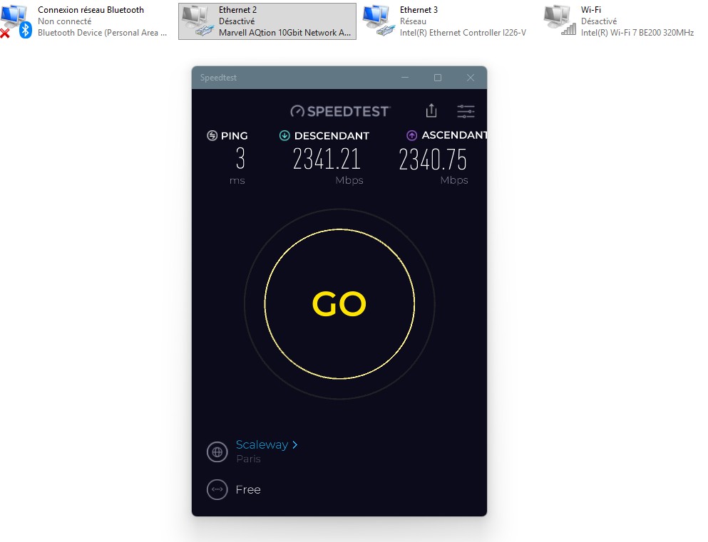 Asus Z890 ProArt, Intel Cpu Core Ultra 7 265K, Memoires 32Go Corsair DDR5 (6000Mhz CL30), Water-cooling Thermaright, nVidia Geforce RTX4060, Alimentation Gigabyte 850W, Samsung SSD 990 Pro, SSD9100 Pro, Steelserie Pro , Souris Razer, Boitier HUMMER, HP Steelserie, Free Fibre Ultra (8Go/8Go), Lan 10Gb, Cable CAT8/7, Switch 10/5/2.5Gbps, Casque Philips Fedelis.