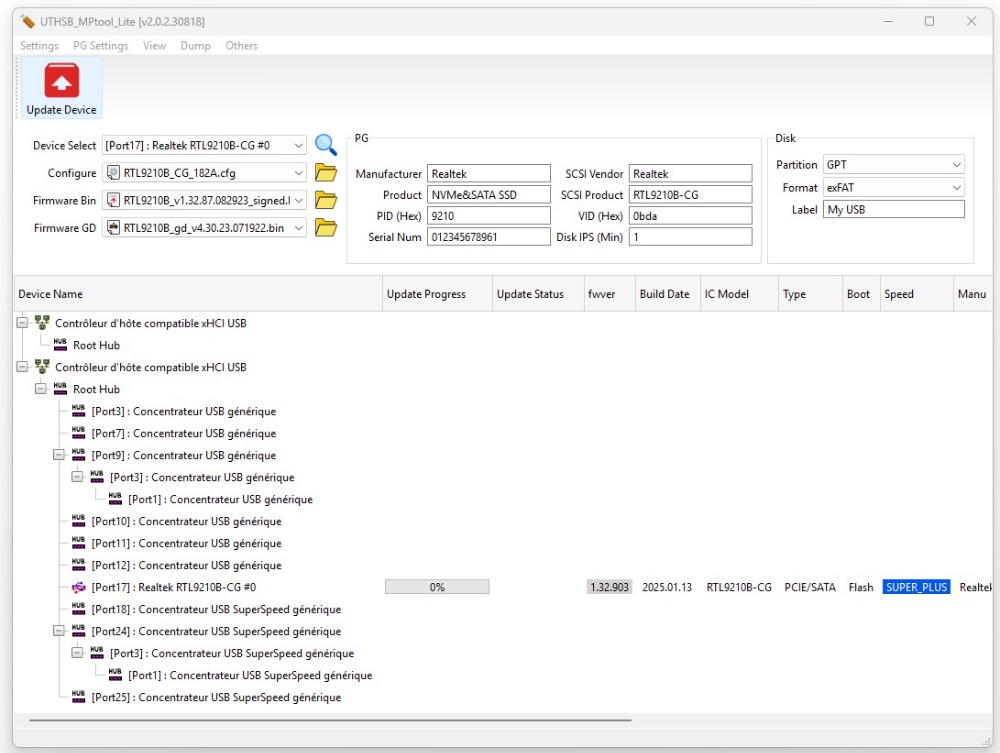 I'm using UTHSB_MPtool_Lite.exe to update it, and i checked Firmware Update and PG, do i did something wrong with that? I attached photos for some info.