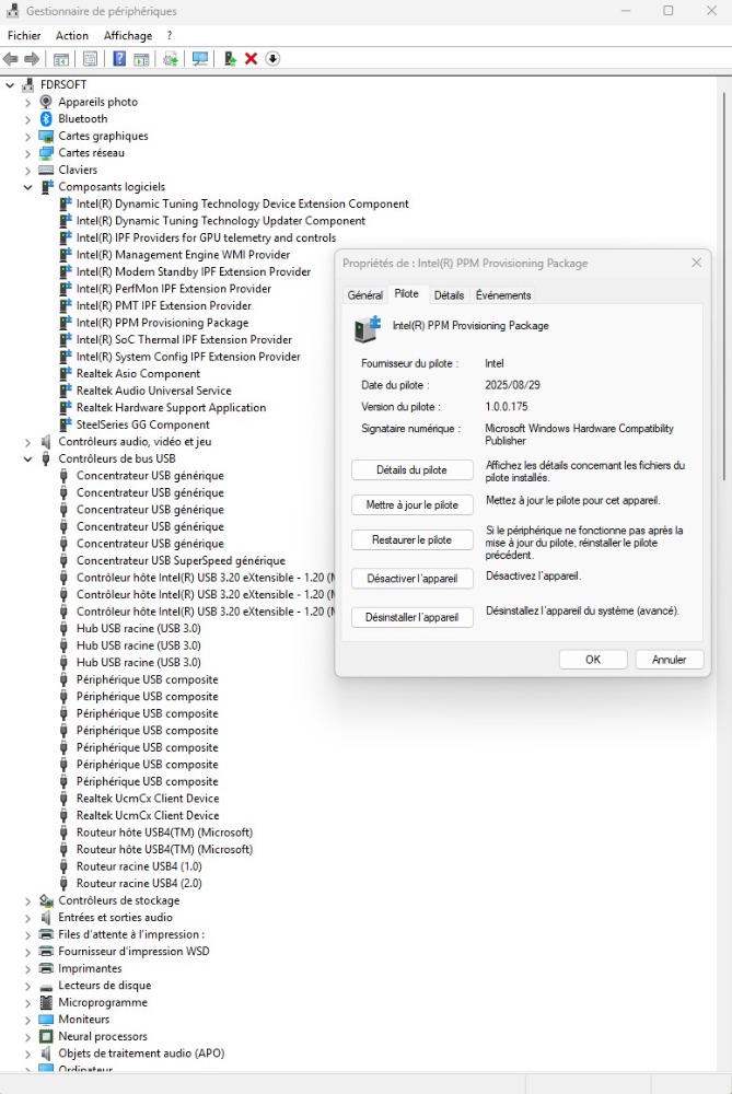 Asus Z890 ProArt, Intel Cpu Core Ultra 7 265K, Memoires 32Go Corsair DDR5 (6000Mhz CL30), Water-cooling Thermaright, nVidia Geforce RTX4060, Alimentation Gigabyte 850W, Samsung SSD 990 Pro, SSD9100 Pro, Steelserie Pro , Souris Razer, Boitier HUMMER, HP Steelserie, Free Fibre Ultra (8Go/8Go), Lan 10Gb, Cable CAT8/7, Switch 10/5/2.5Gbps, Casque Philips Fedelis.