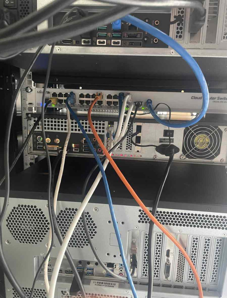 Here's a picture of my rack, from behind. (The (blue) CAT8 cable from the AQC113CS interface to the SFP+ module is not in contact with any other cables)