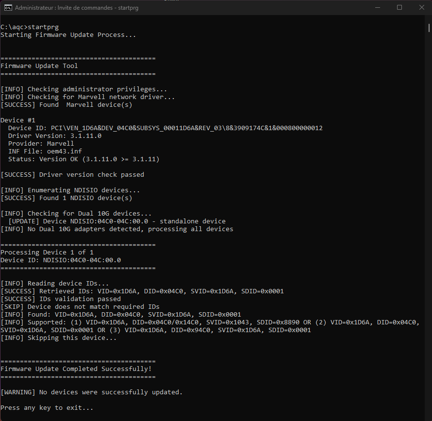 Re: Marvell/Aquantia AQC113, AQC113C, AQC-113CS (10Gbps) Firmware Version 1.5.45