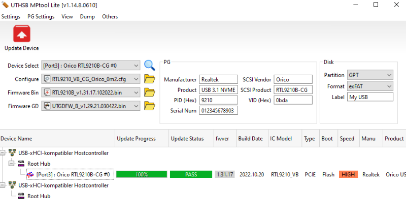 I have updadet Orico with UTGDFW_B_v1.29.21.030422 and Orico Config