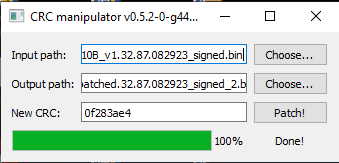 Load your modified file (with new serial and with deleted 4x FF at the end) and use the former noted original CRC32 (for file RTL9210B_v1.32.87.082923_signed.bin its 0f283ae4) and patch it.