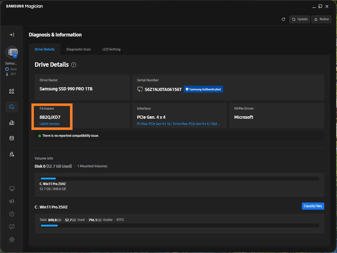 Re: Samsung 990 Pro SSD Firmware 8B2QJXD7