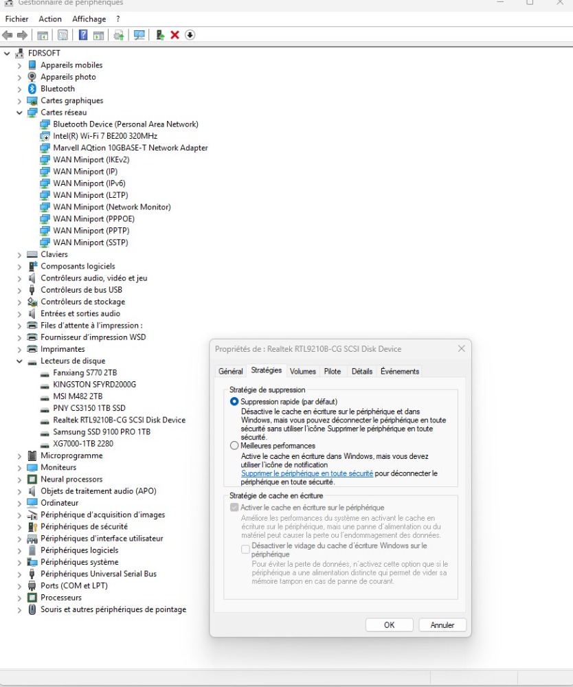 Asus Z890 ProArt, Intel Cpu Core Ultra 7 265K, Memoires 32Go Corsair DDR5 (6000Mhz CL30), Water-cooling Thermaright, nVidia Geforce RTX4060, Alimentation Gigabyte 850W, Samsung SSD 990 Pro, SSD9100 Pro, Steelserie Pro , Souris Razer, Boitier HUMMER, HP Steelserie, Free Fibre Ultra (8Go/8Go), Lan 10Gb, Cable CAT8/7, Switch 10/5/2.5Gbps, Casque Philips Fedelis.