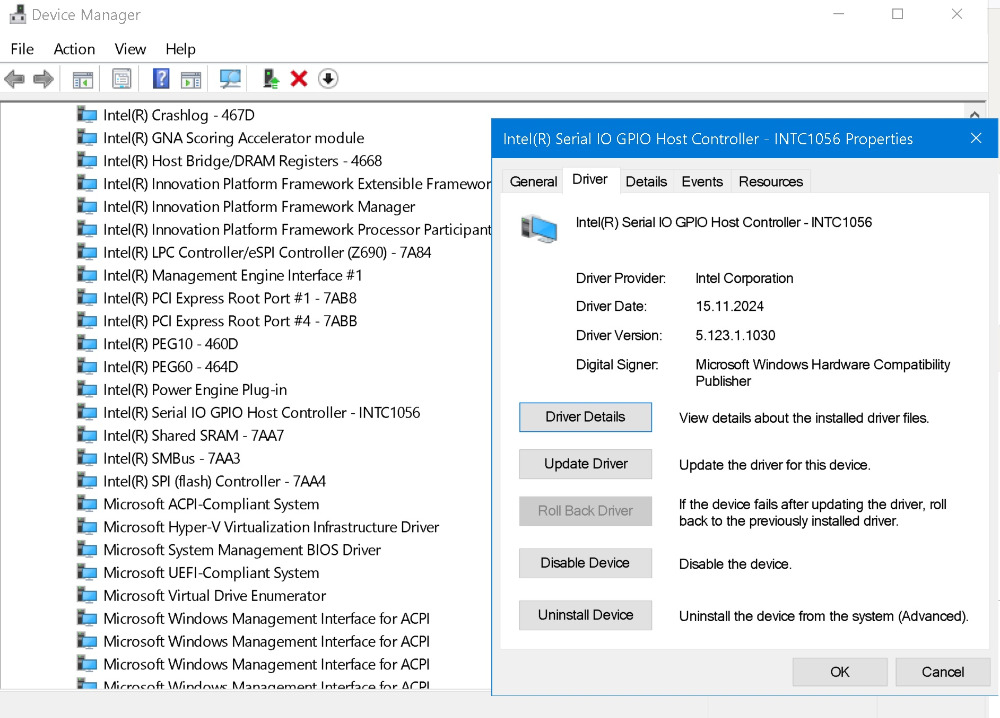 Intel Serial IO 30.100.2426.82 was the latest for alderlake/raptorlake