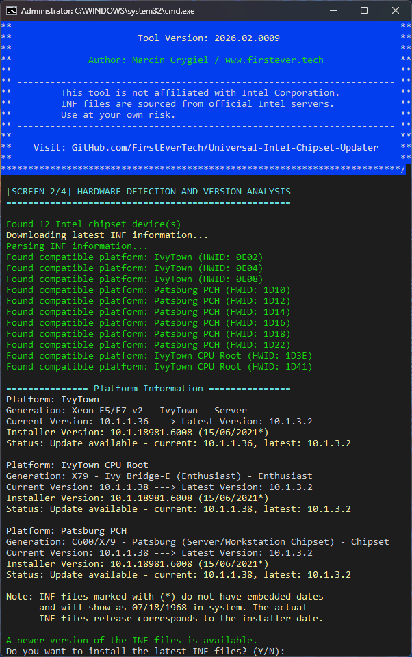 - Detects all installed versions – both old EXE‑based (Intel(R) Chipset Device Software) and new MSI‑based (SetupChipset)