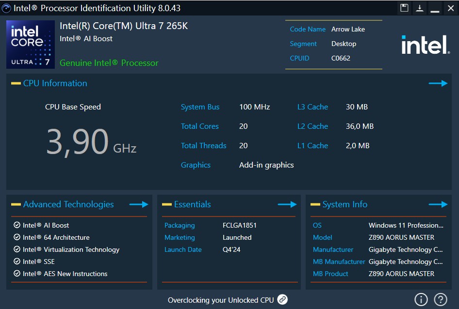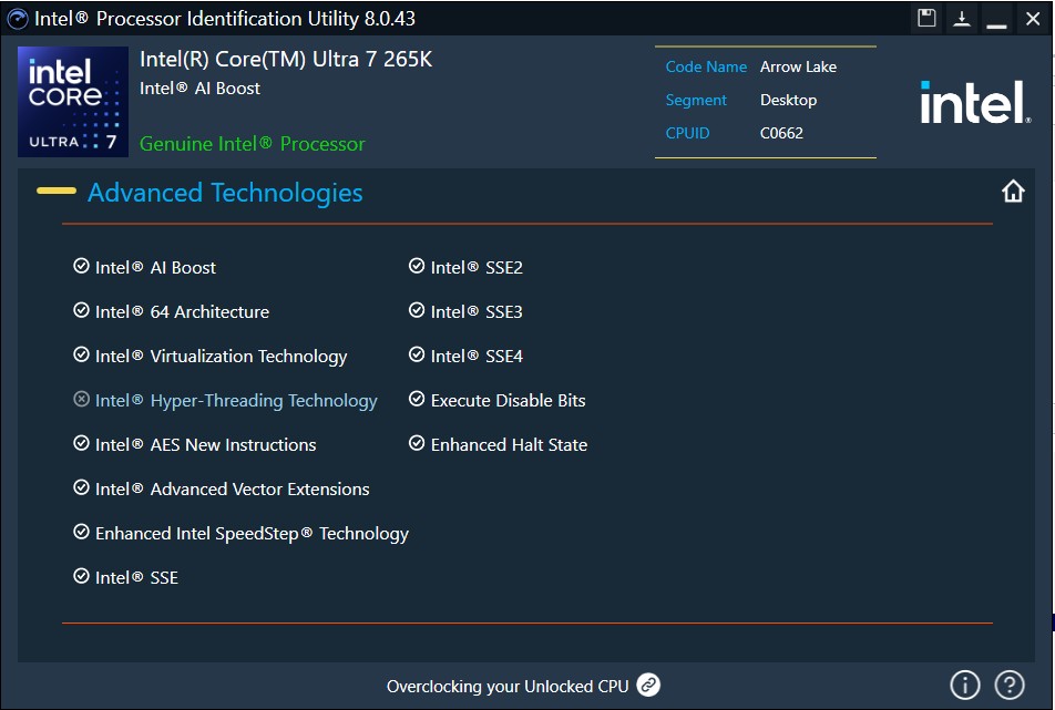 Intel® Processor Identification Utility Version 8.0.43