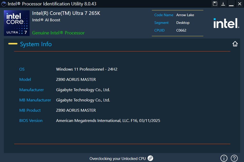 Intel® Processor Identification Utility Version 8.0.43