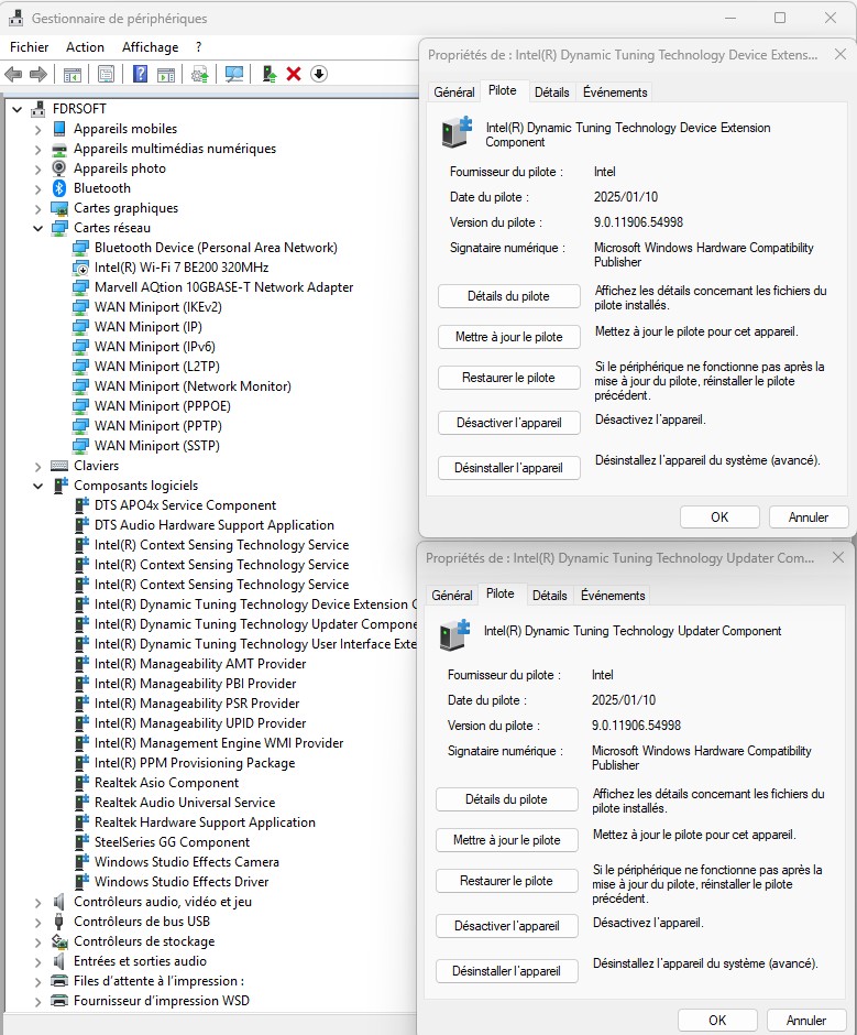 Asus Z890 ProArt, Intel Cpu Core Ultra 7 265K, Memoires 32Go Corsair DDR5 (6000Mhz CL30), Water-cooling Thermaright, nVidia Geforce RTX4060, Alimentation Gigabyte 850W, Samsung SSD 990 Pro, SSD9100 Pro, Steelserie Pro , Souris Razer, Boitier HUMMER, HP Steelserie, Free Fibre Ultra (8Go/8Go), Lan 10Gb, Cable CAT8/7, Switch 10/5/2.5Gbps, Casque Philips Fedelis.