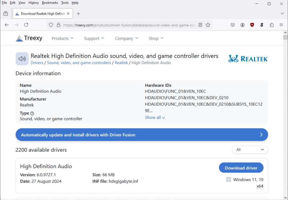 1 년 5 월 전 - 1 년 5 월 전edit 7/6 - speaking of 6.0.9689.1, the treexy.com page about Realtek High Definition Audio recently claims to have a v6.0.9689.1 hdxgigabyte.inf codec driver thru its Driver Fusion app