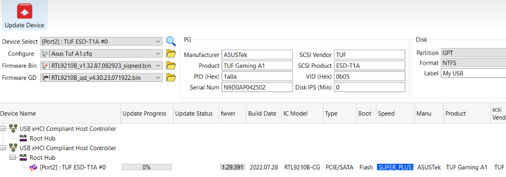 NVME USB drives Realtek RTL9210/RTL9220 Firmware Version 1.xx