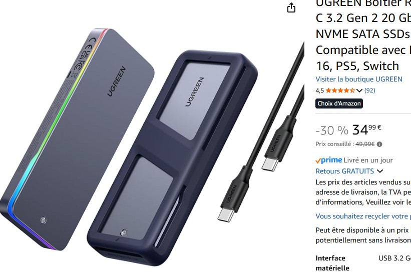 UGREEN Housing with an RGB light strip. When the housing transmits data, the color gradient of the RGB light is automatically generated.