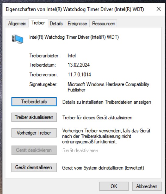 Re: Intel Watchdog Timer Driver 11.7.0.1014 Date 13.02.2024