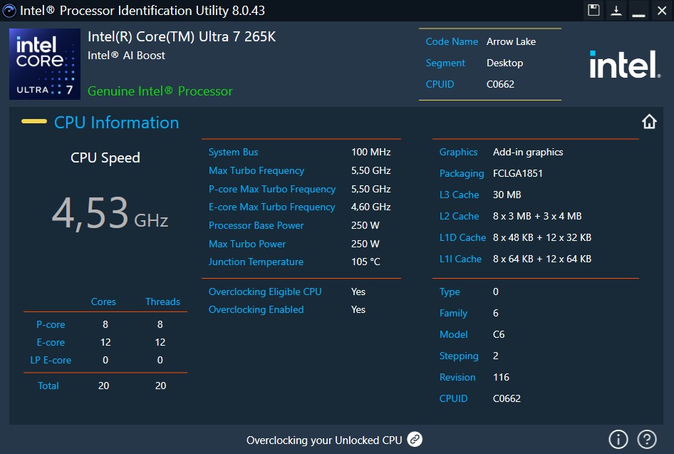 Intel® Processor Identification Utility Version 8.0.43