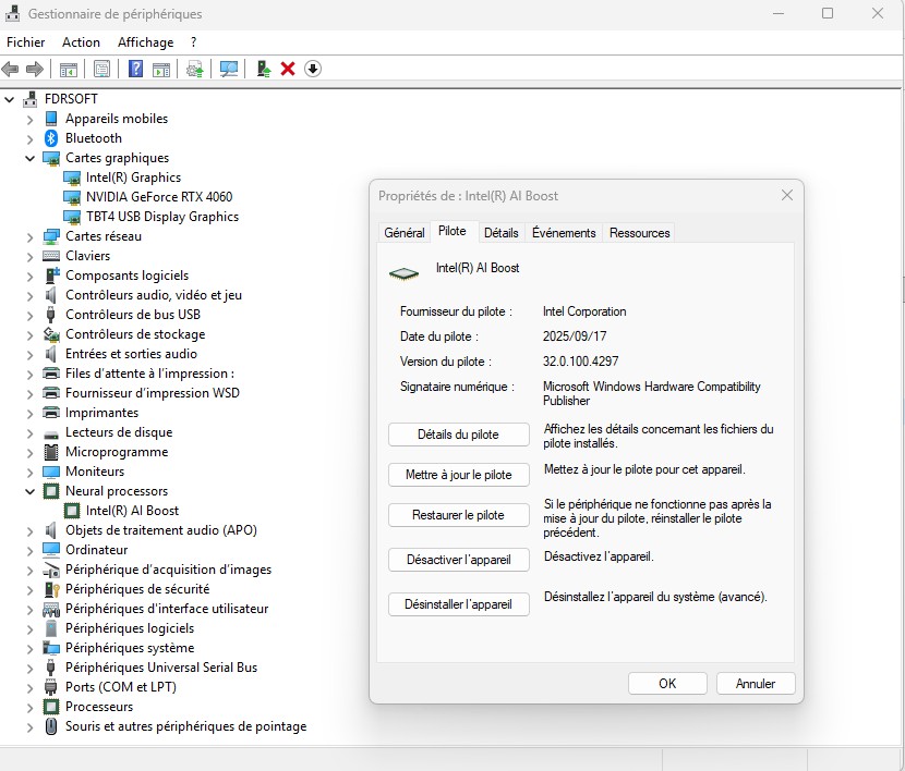 Intel NPU (AI Boost) Drivers Version 32.0.100.4297