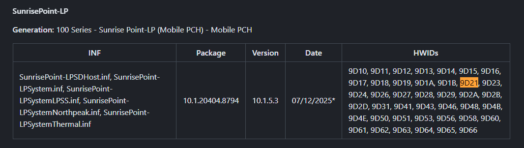 sunrisepoint-lp 9D21 10.1.20404.8794 SunrisePoint-LPSystem.inf 10.1.5.3 07/12/2025*