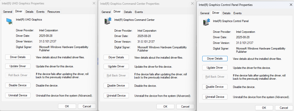 Re: Intel UHD & Iris Graphics Drivers Version 31.0.101.2135 New WHQL