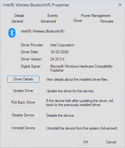Re: Intel® Wireless Bluetooth Drivers v24.xxx