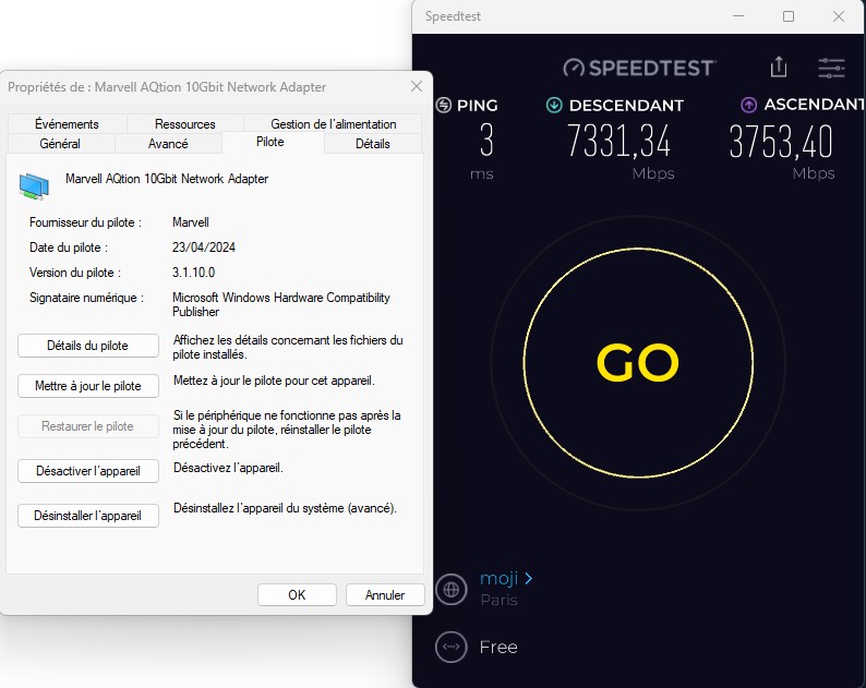 Asus Z890 ProArt, Intel Cpu Core Ultra 7 265K, Memoires 32Go Corsair DDR5 (6000Mhz CL30), Water-cooling Thermaright, nVidia Geforce RTX4060, Alimentation Gigabyte 850W, Samsung SSD 990 Pro, SSD9100 Pro, Steelserie Pro , Souris Razer, Boitier HUMMER, HP Steelserie, Free Fibre Ultra (8Go/8Go), Lan 10Gb, Cable CAT8/7, Switch 10/5/2.5Gbps, Casque Philips Fedelis.