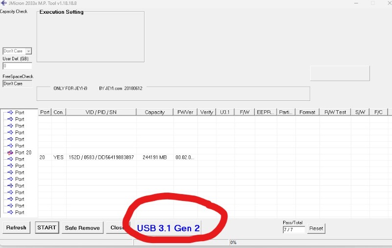 I will show you if necessary how to check if the port where the Nvme / USB box is connected is in USB 3.2