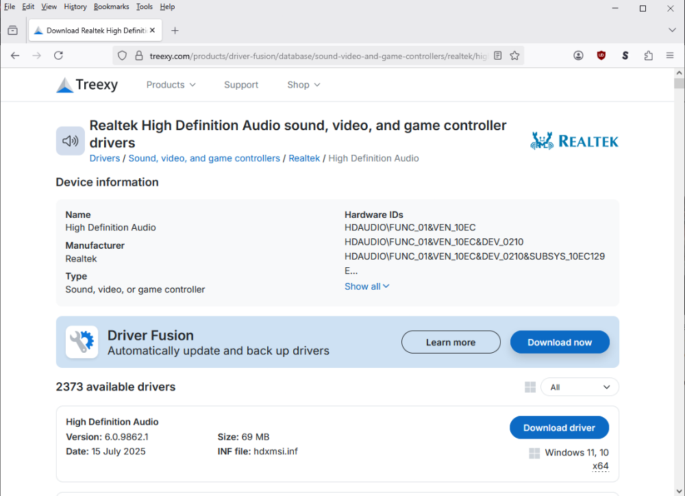 Treexy Driver Fusion has 6.0.9862.1 hdxmsi.inf codec driver file recently mentioned on the treexy.com web site: