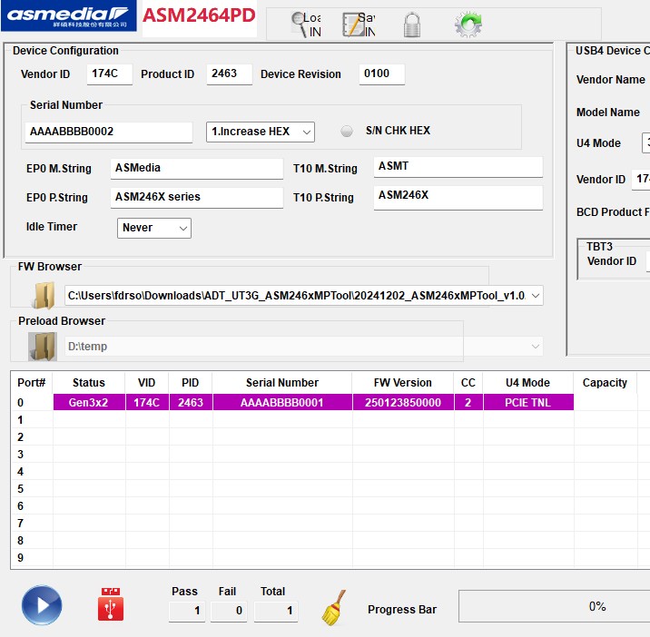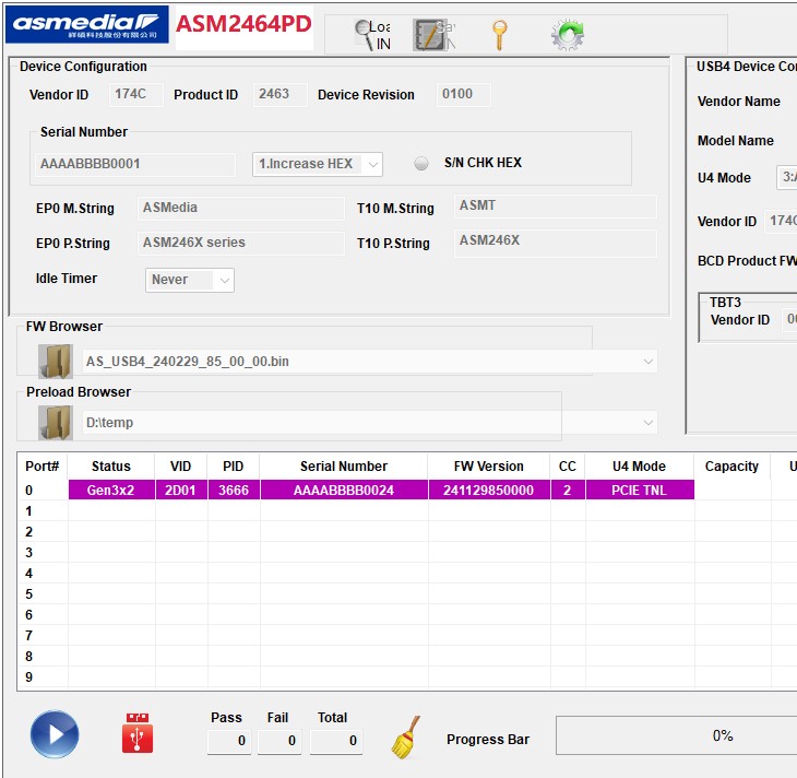 Asmedia ASM2464 NVME/USB 4.x Controller Firmware Version 250123_85_00_00