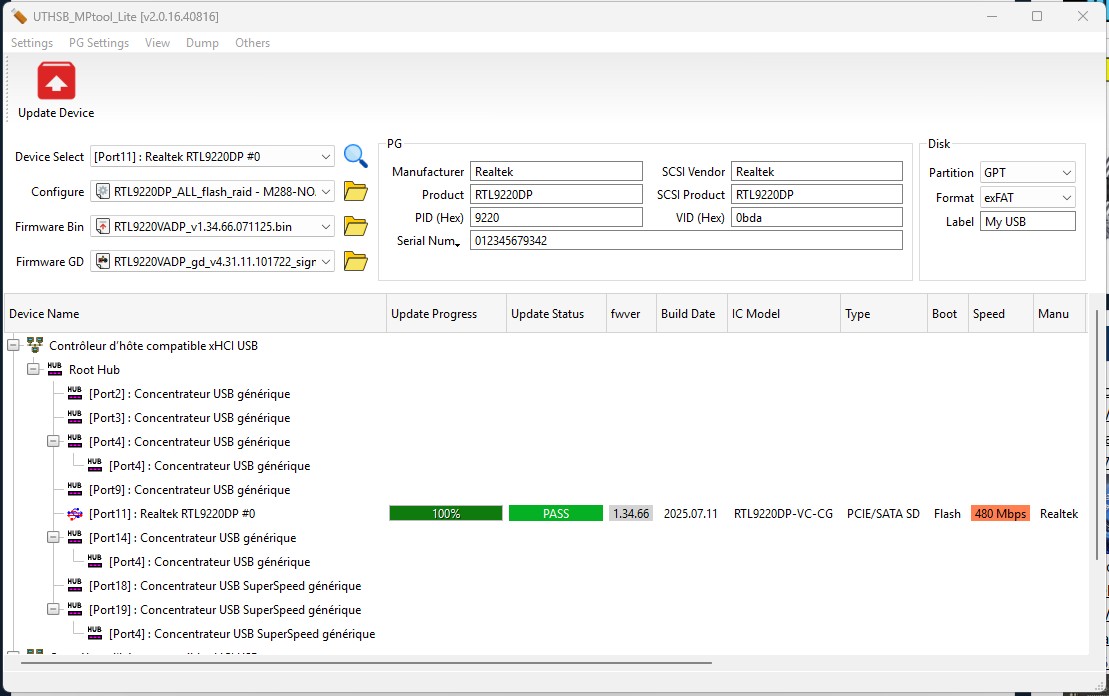 Realtek RTL9220(VA-DP) NVMe/USB 3.2 Controller firmware Version 1.34.66.071125
