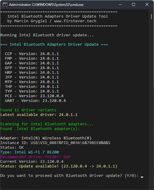 I'm proud to present an improved version of my automated solution for Intel Bluetooth drivers version 24.0.1.1.